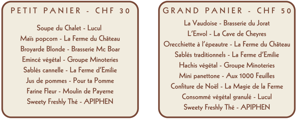 Faites plaisir à vos collaborateurs, partenaires ou clients avec un panier garni de produits artisanaux issus du Mapping Agrofood Broye. Chaque panier est confectionné avec des produits de nos acteurs.